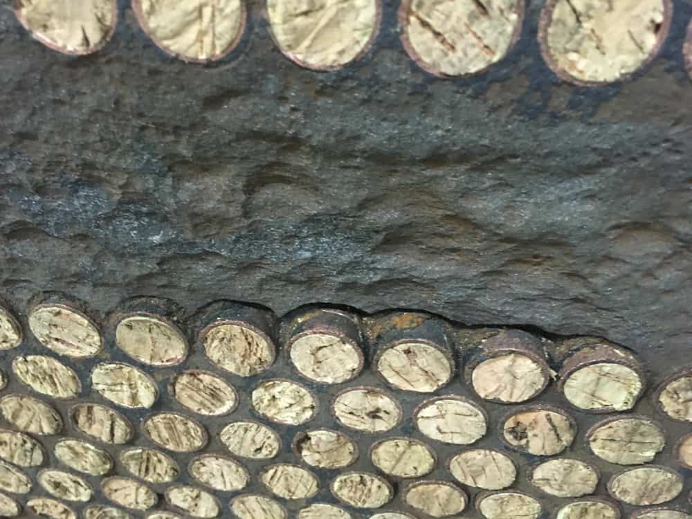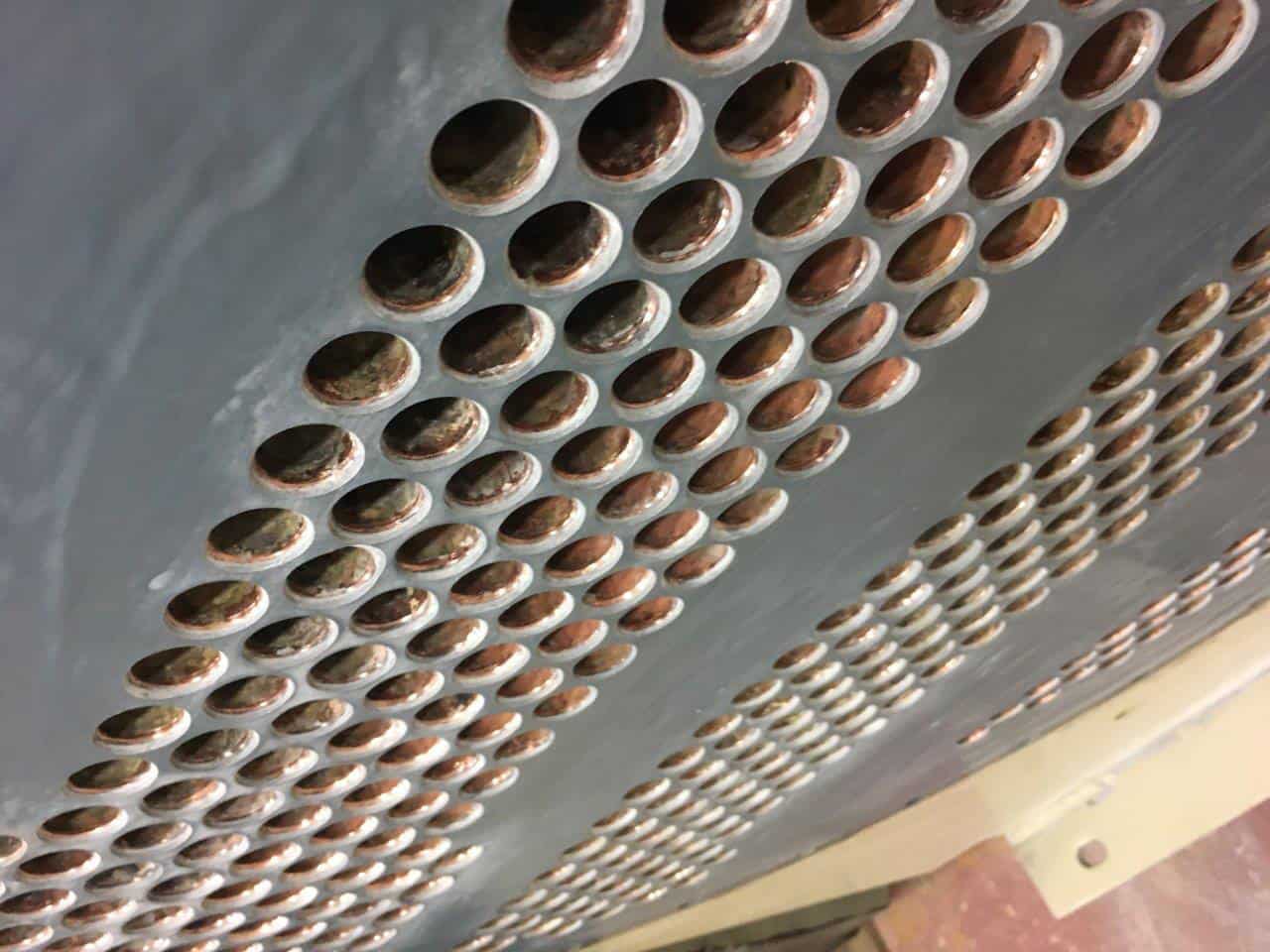 Cooling water is continuously returned to the chiller unit for cooling during chiller operation. High velocity water volume pumped from the bottom of the tower can easily reach 1,500 gallons per minute and higher. This tremendous flow at high velocity, along with the abrasive particles found in the tower sump, causes major problems on internal chiller surfaces.